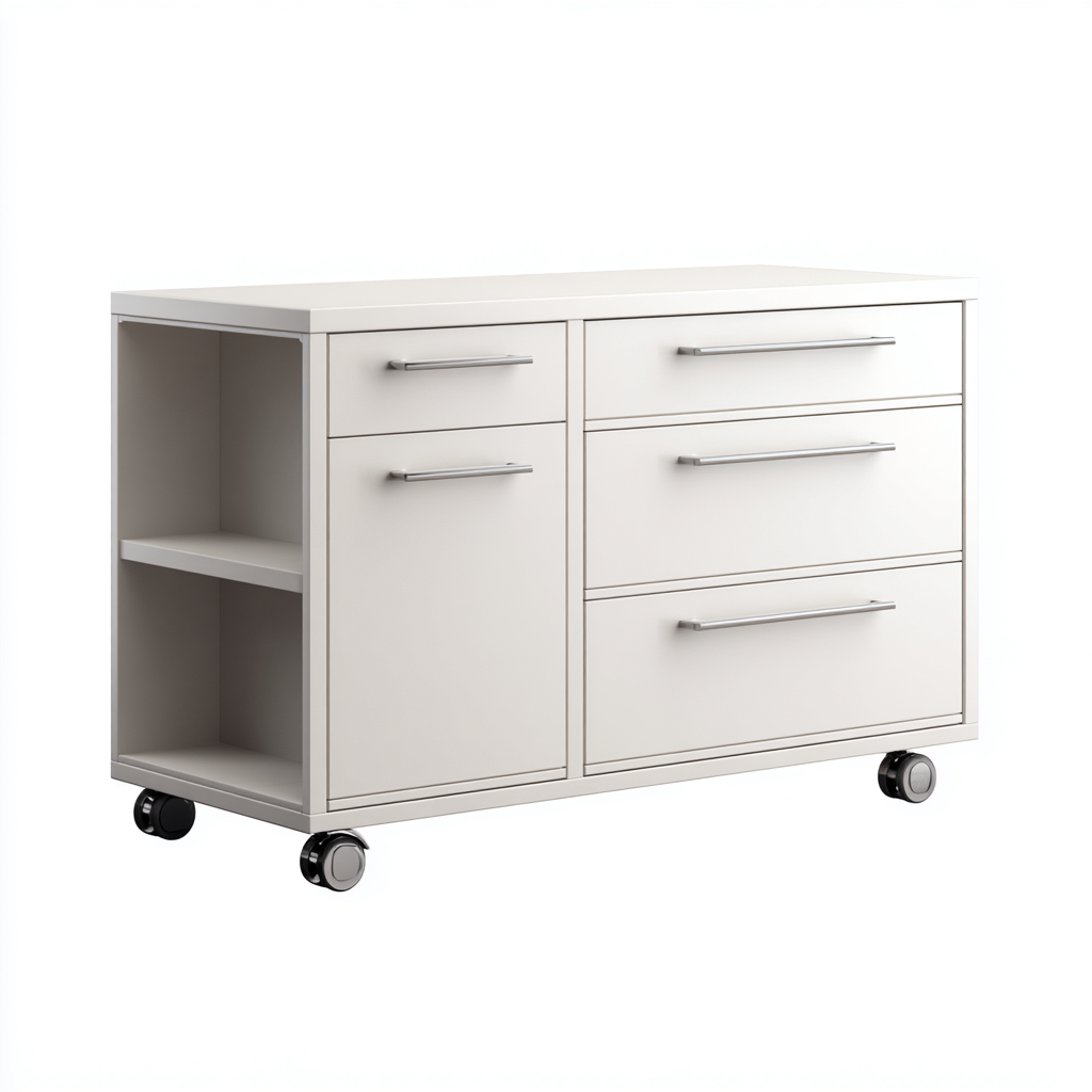 Armadio per ufficio con ruote 90x45x60 cm - bianco crema - design moderno