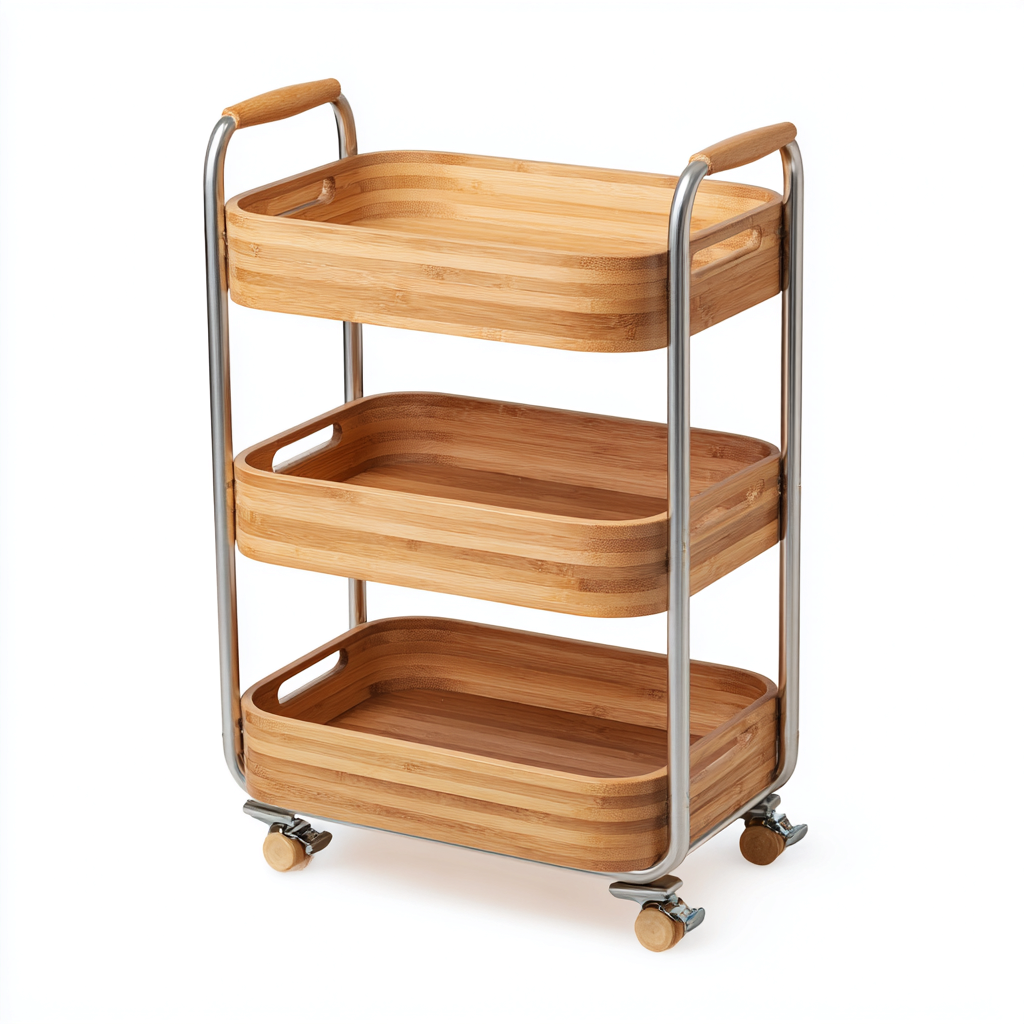 Carrello da cucina in bambù e metallo 40x30x80 cm - legno naturale-argento - design moderno per cucina