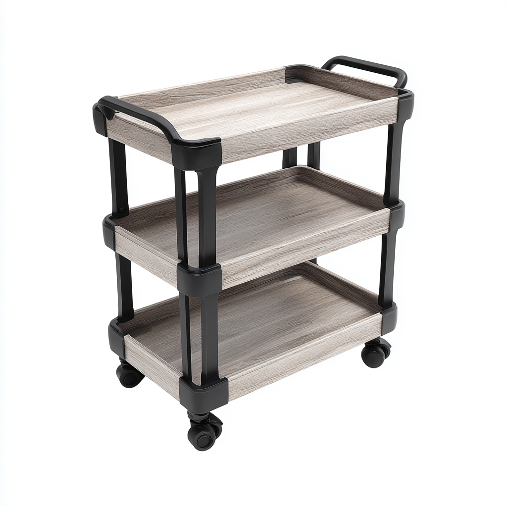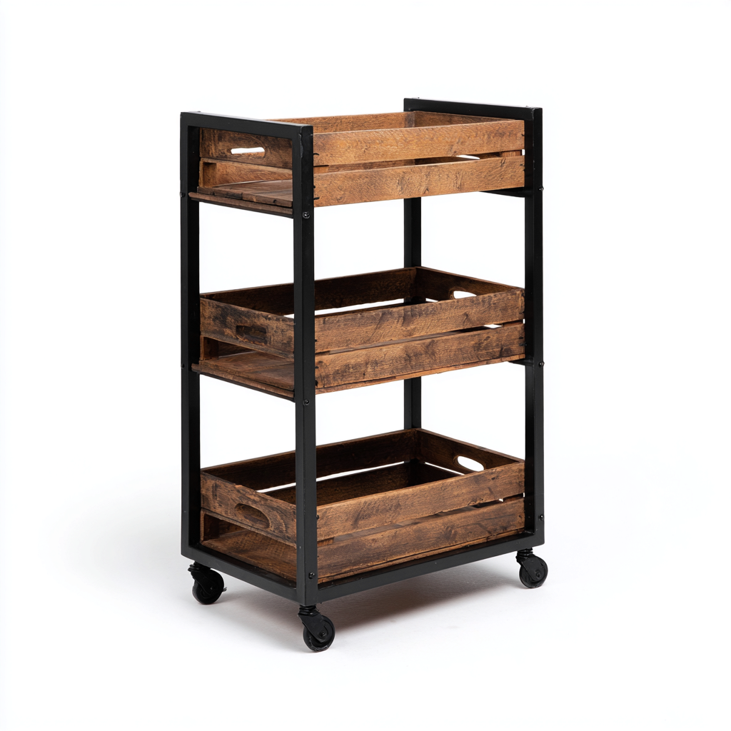 Carrello da cucina su ruote a tre livelli in legno e metallo per uso domestico 40x30x75 cm - design industriale