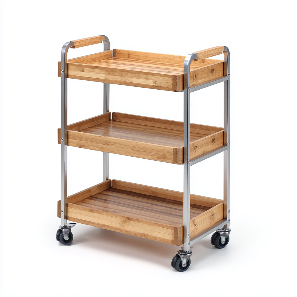 Carrello da cucina in bambù e metallo 45x30x85 cm - legno naturale-argento - design moderno per cucina