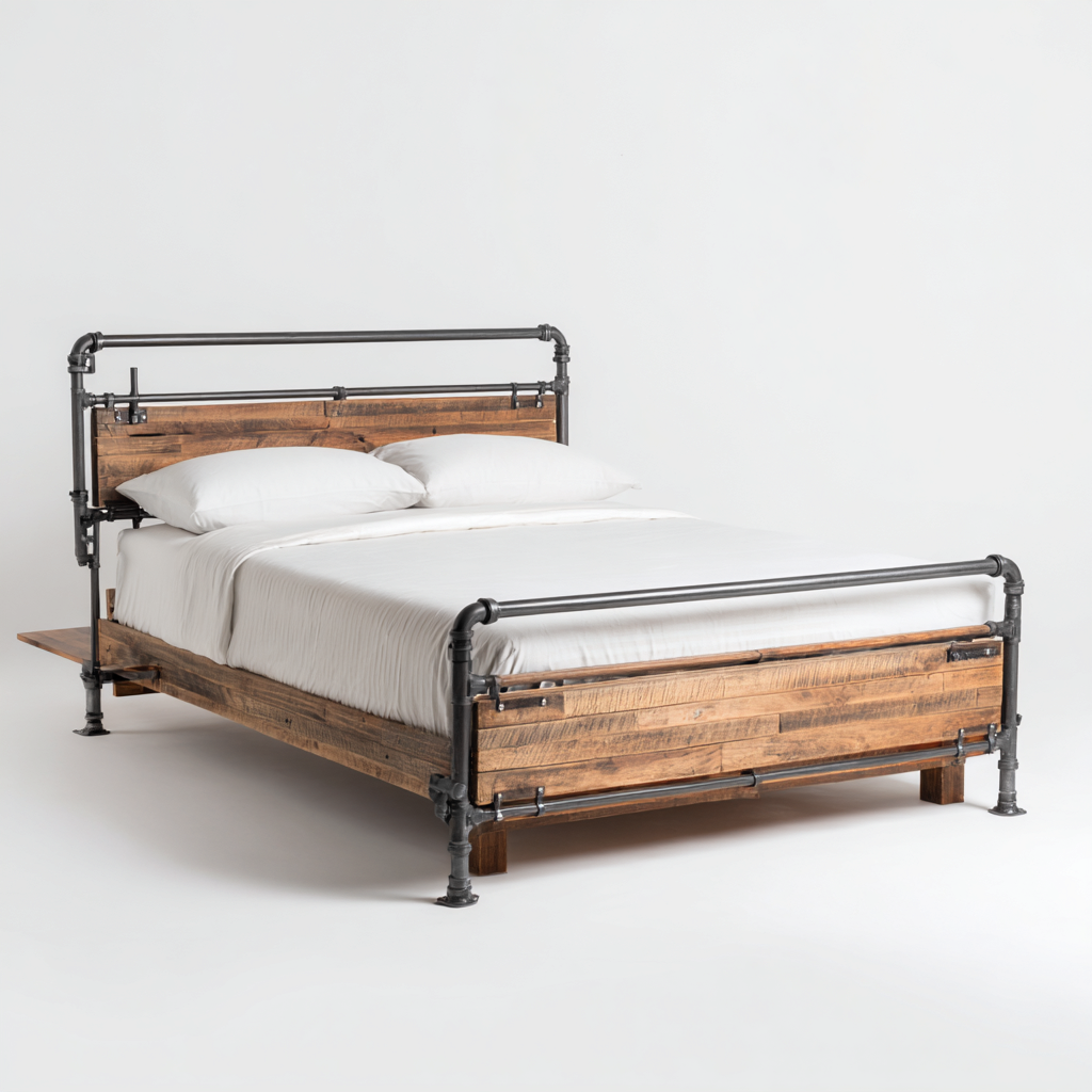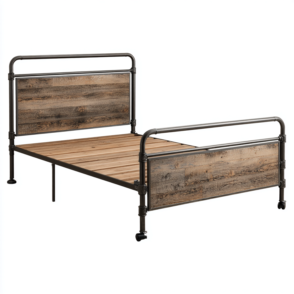 Letto matrimoniale in legno e metallo con testiera decorativa per camera da letto 200x160x110 cm - design industriale