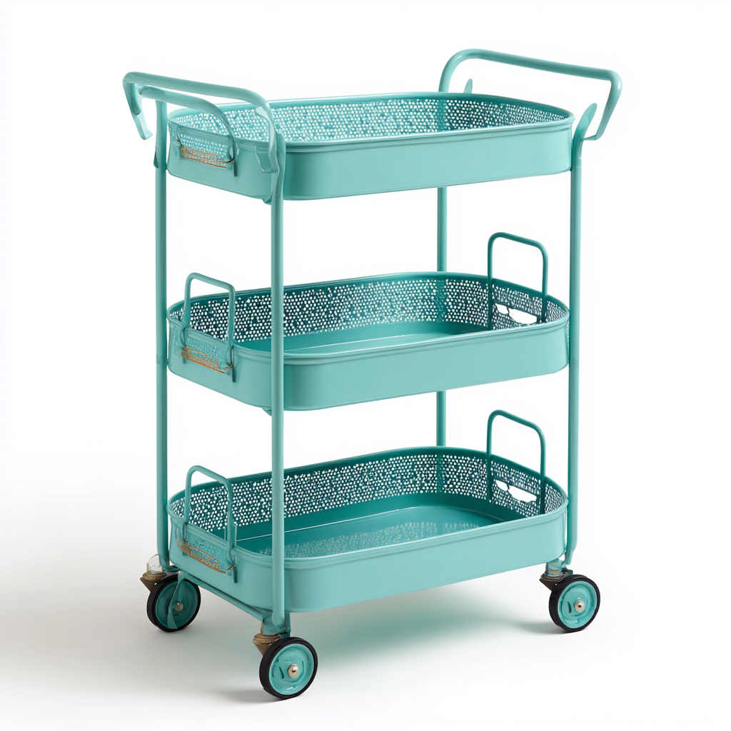 Dotato di ruote per facilitare lo spostamento e di maniglie integrate per una presa comoda. I ripiani aperti permettono un accesso rapido agli oggetti.