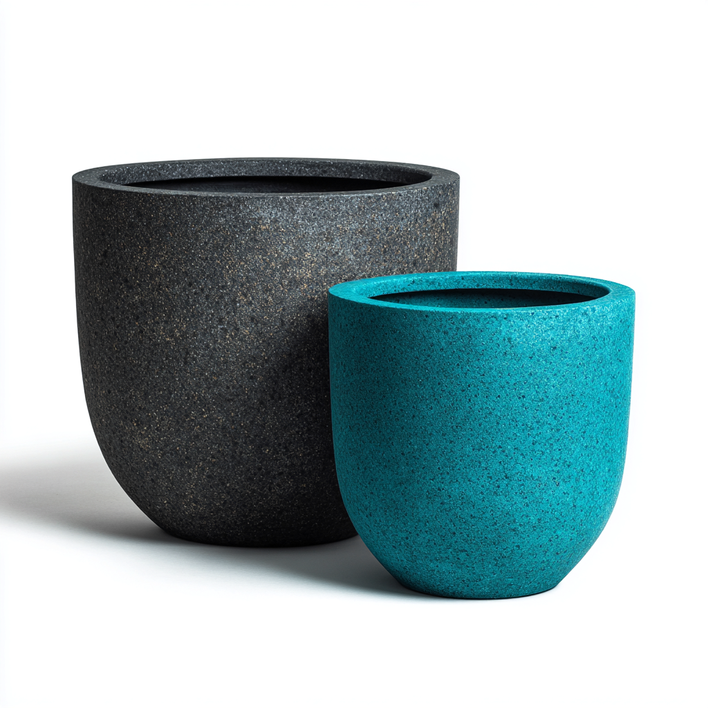 Realizzati in materiale resistente adatto per ambienti esterni con superficie strutturata e finitura uniforme. Ogni vaso presenta una struttura solida pensata per un utilizzo stabile e duraturo all'aperto.